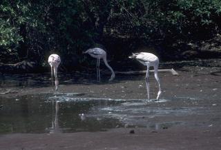 Flamingos feeding in brackish lagoons |