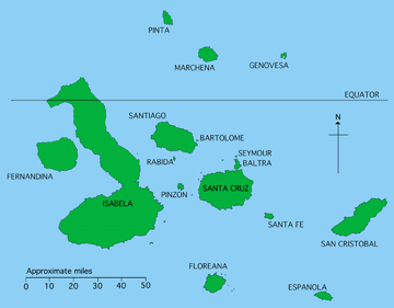| Perhaps no other place on Earth can evoke the same emotions in biologists, geologists, or naturalists as the Galápagos Islands. The rich history of discovery begun by Charles Darwin in the early 1800's continues today in the ongoing investigations on these unique communities and biota. The isolation which these islands afford their occupants leads to obvious questions concerning how the islands were formed and how their plants and animals reached the islands. |